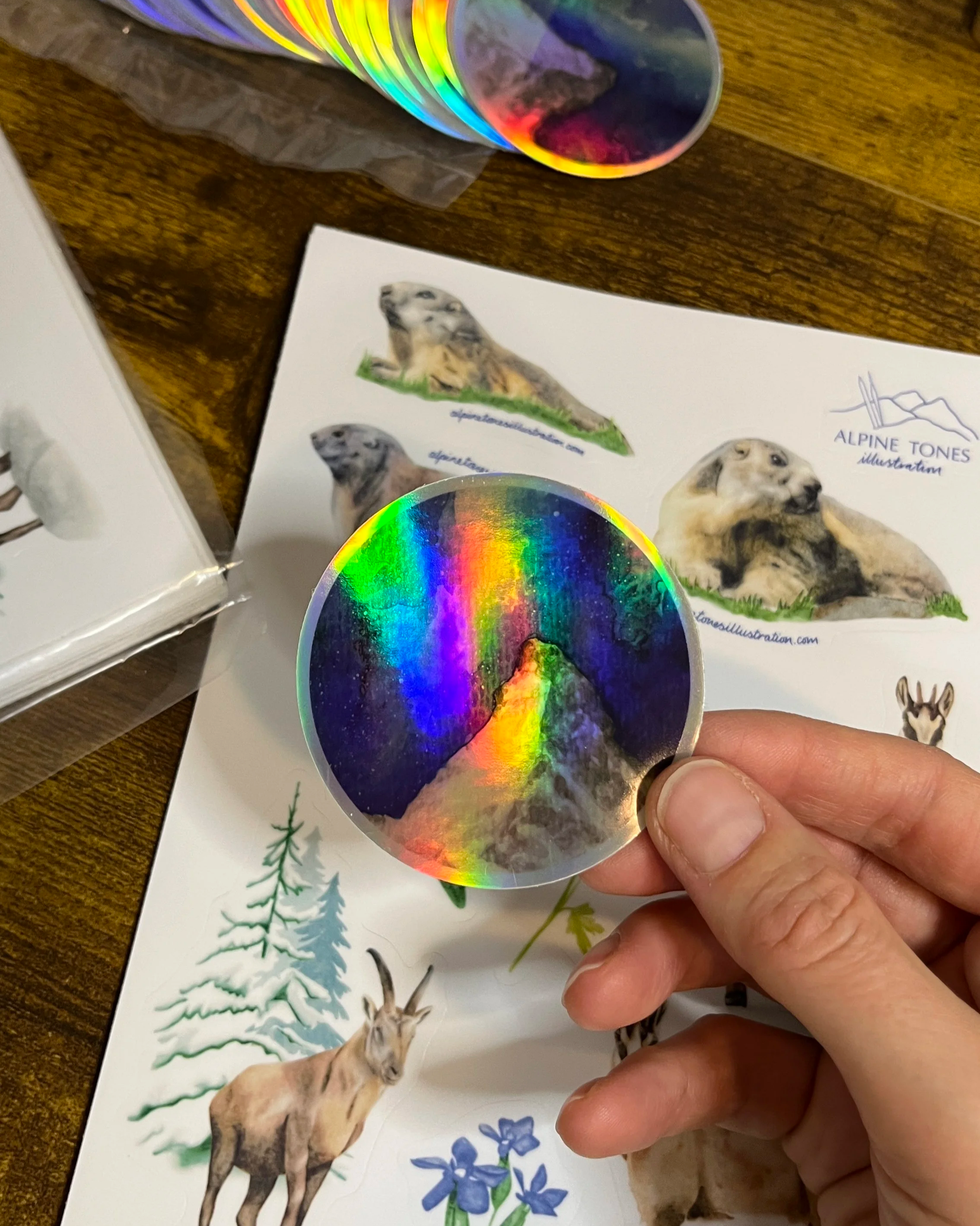 The Matterhorn Galaxy Holographic Stickers - my bestseller at the Turbina Artist & Flea Market