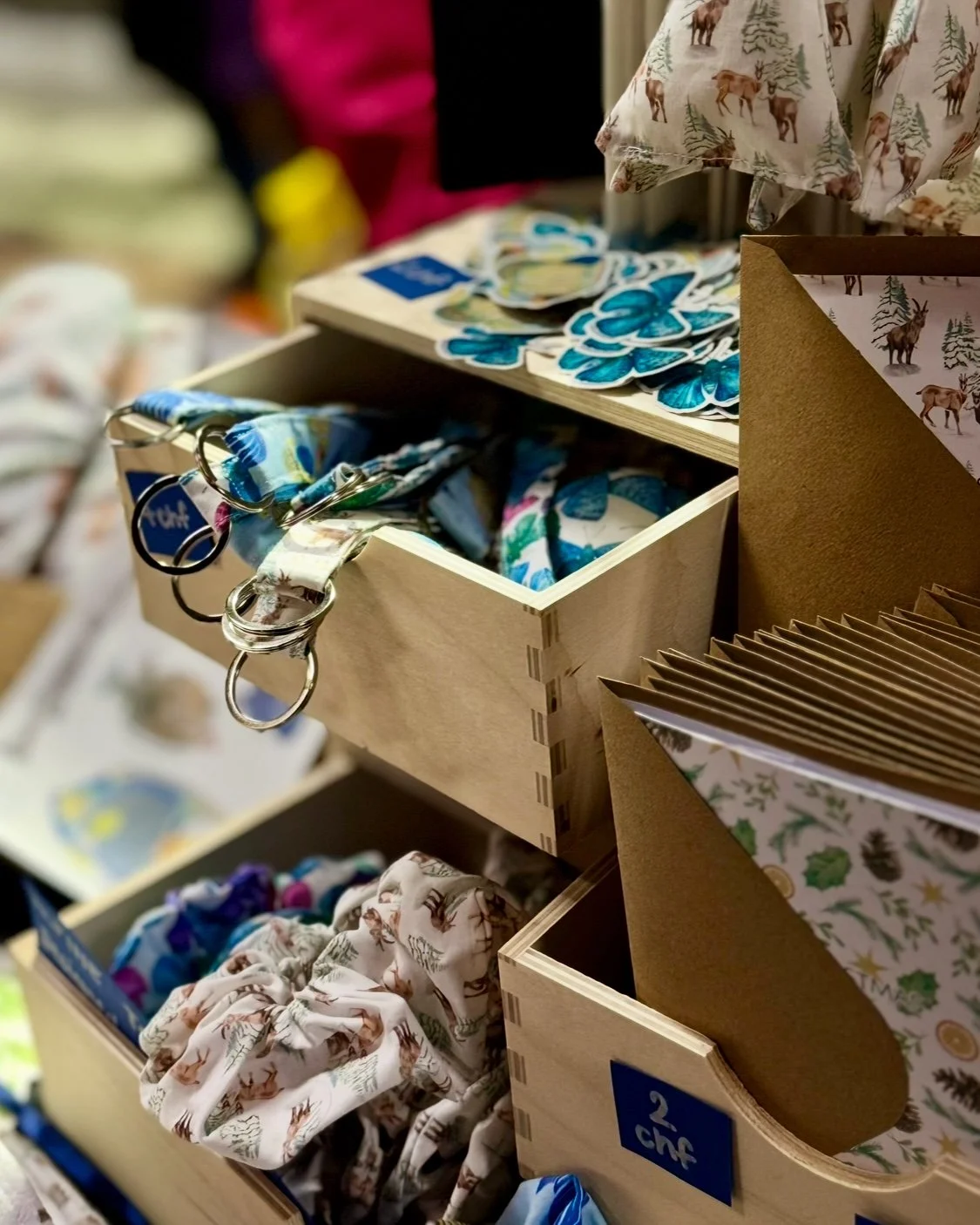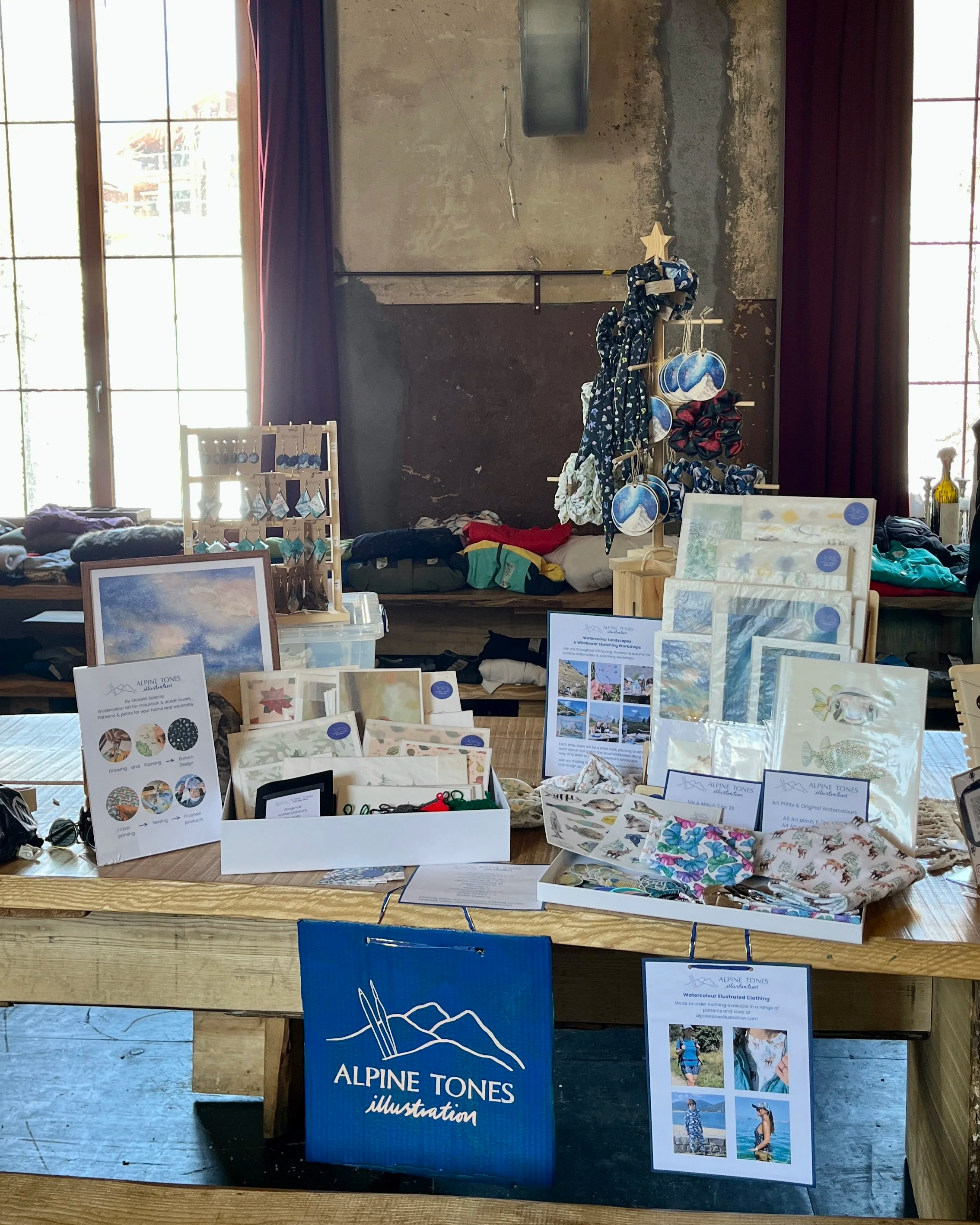 In March this year, a combination flea market and artist market was held at Turbina. It’s off the beaten (icy!) track, at one end of town, so I’ll be honest, I was a little surprised that this was as successful for me as it was! I think the flea market combo was a real pull for locals and I sold lots of low priced items like the holographic Matterhorn stickers, A5 prints and scrunchies. This was also one of my favourite markets because it was the only one I’ve done indoors!!